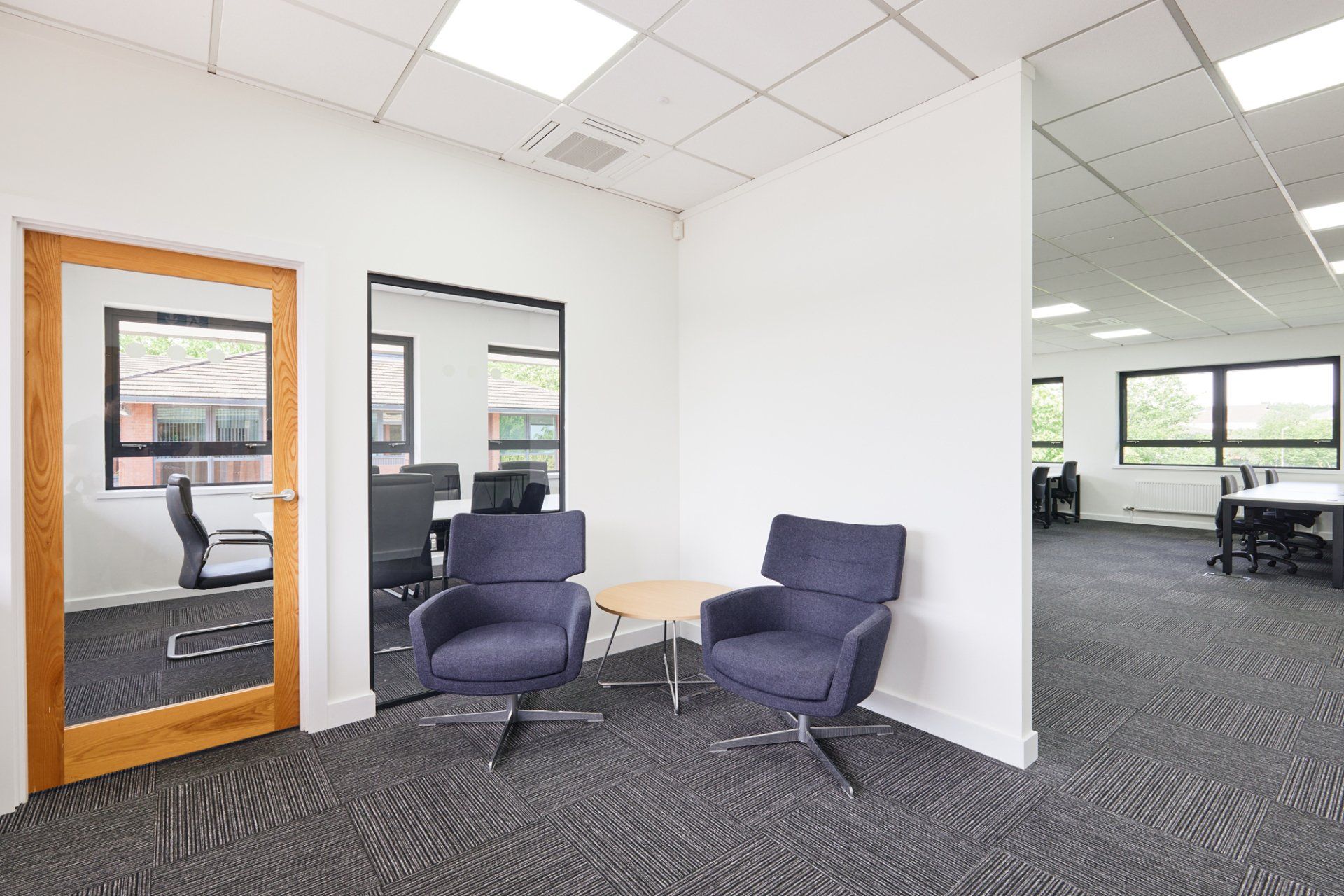 High quality self contained offices set within a well maintained and mature landscaped environment, enhanced with planting and additional architectural landscape features.